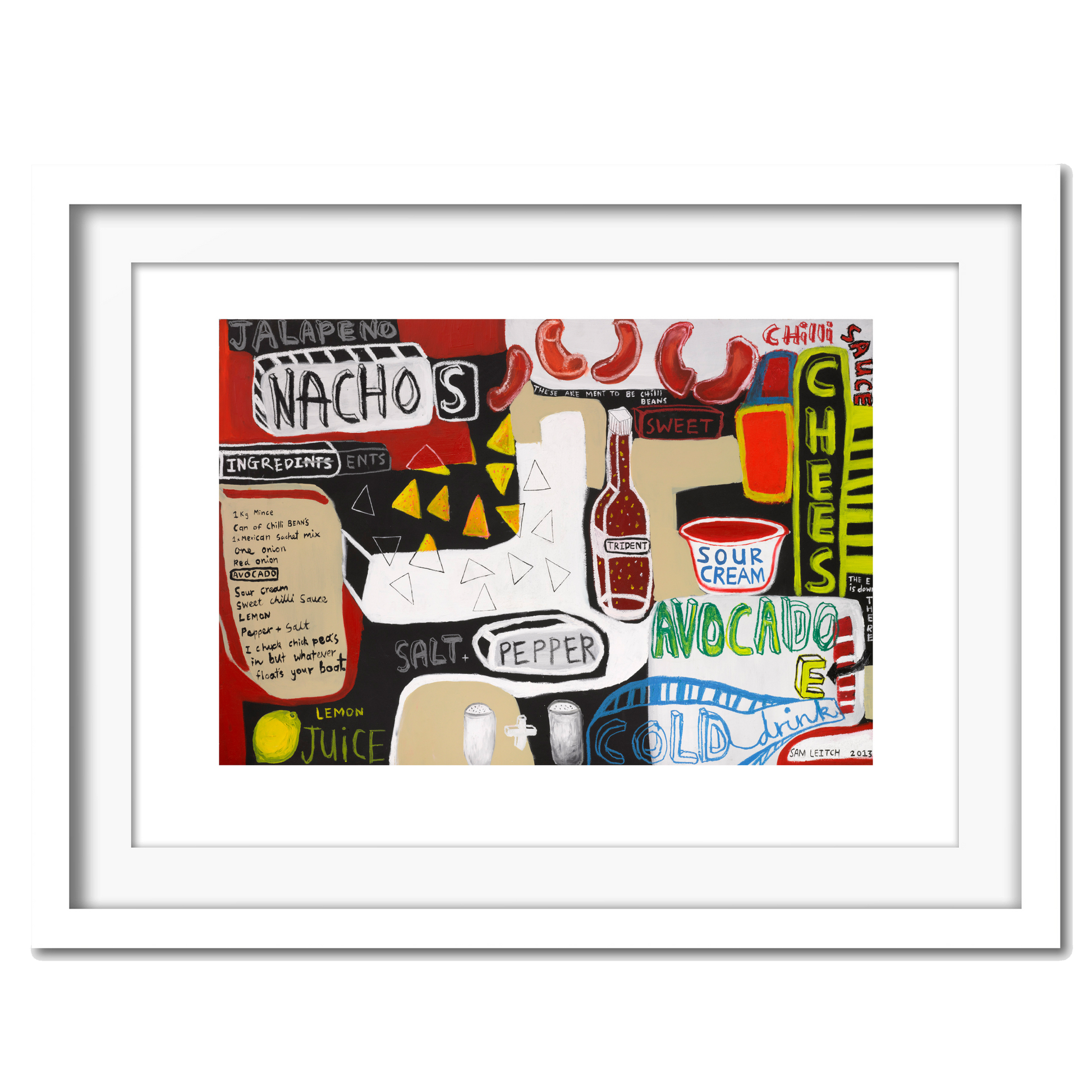 When a passion for nachos meets artistic expression we have the Nachos giclée print. This fine art print blends modern artwork with the joy of crafting delicious snacks.