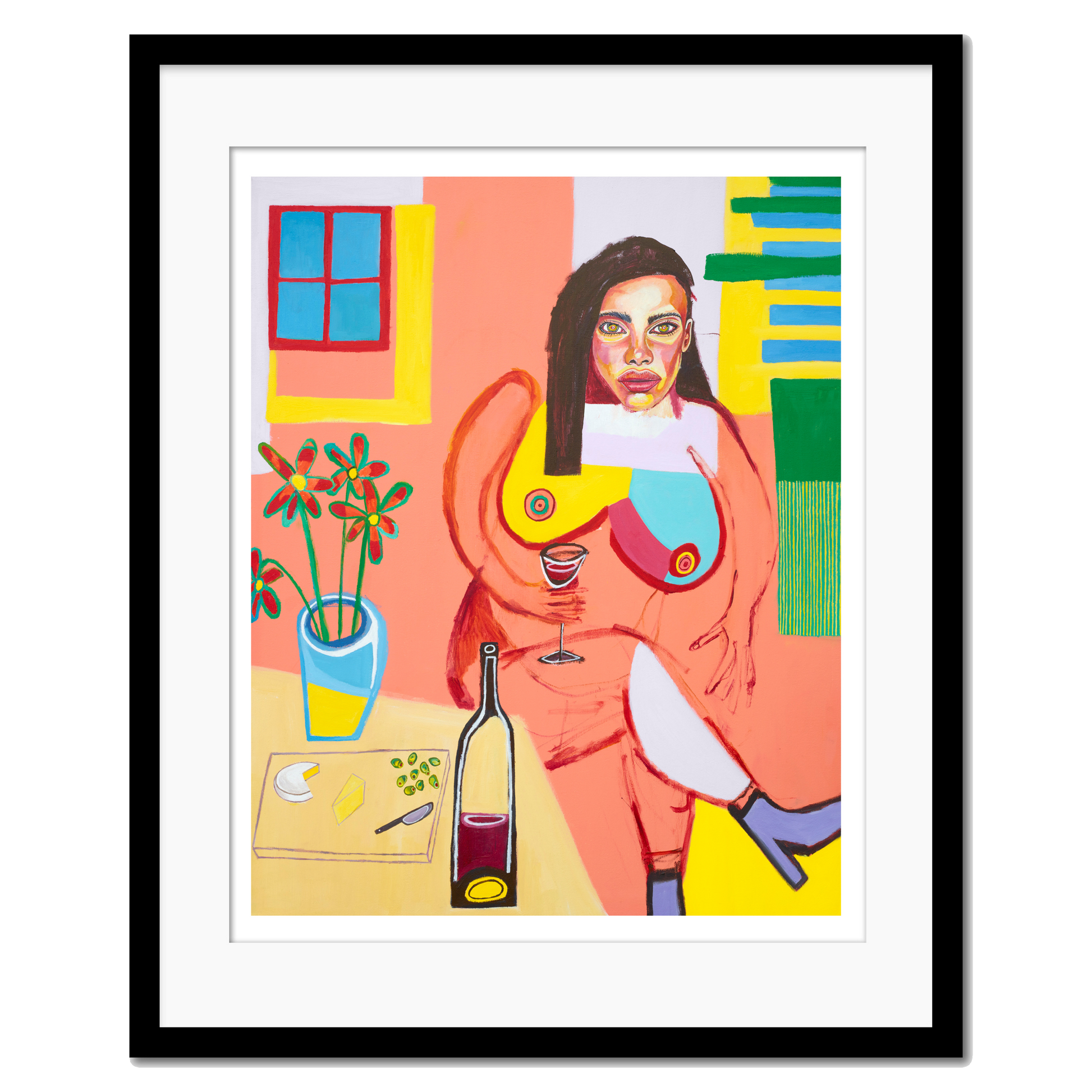 Immerse yourself in this seductive artwork showcasing a voluptuous woman surrounded by peach tones. This giclée print embodies the essence of feminine grace and leisure.